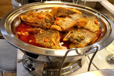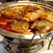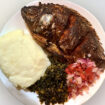 Fresh fish stew served with Ugali, Matooke (Mashed Plantain), Pilau, Steamed White Rice, Steamed Cassava (Yucca) Sweet potato, Yum Includes: Sukuma (Green Vegetables), Avocado.
