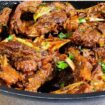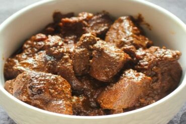 Cow Liver Stew served with Ugali, Matooke (Mashed Plantain), Steamed White Rice, Pilau, Steamed Cassava (Yucca) Includes: Sukuma (Green Vegetables) and Kachumbari.